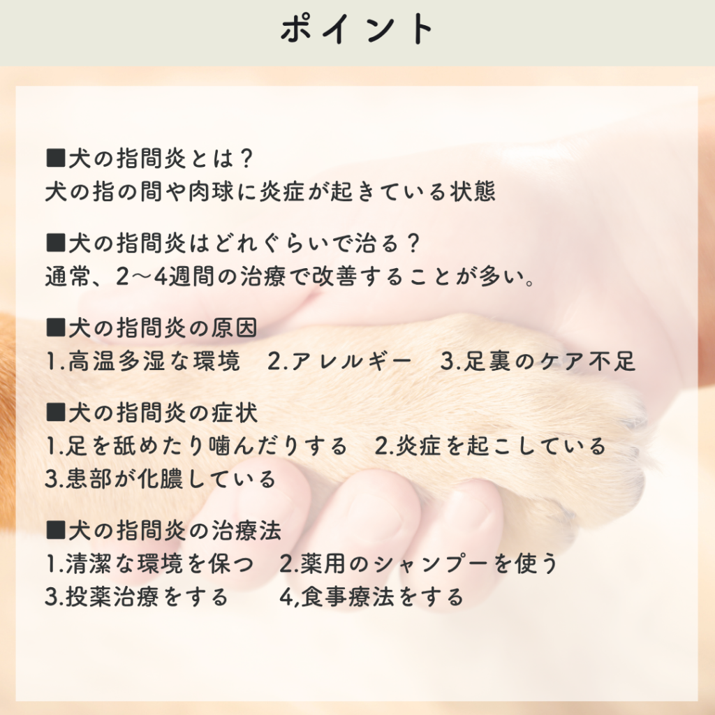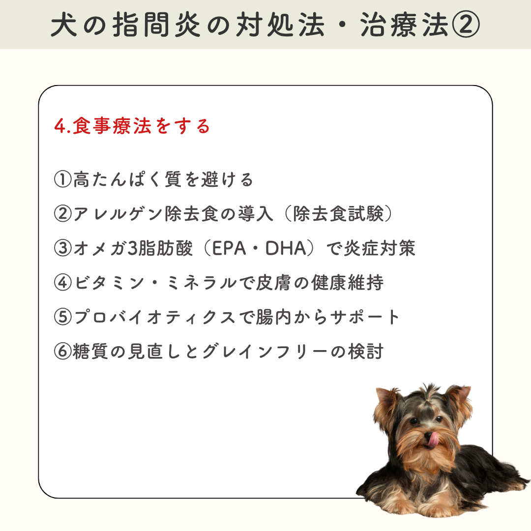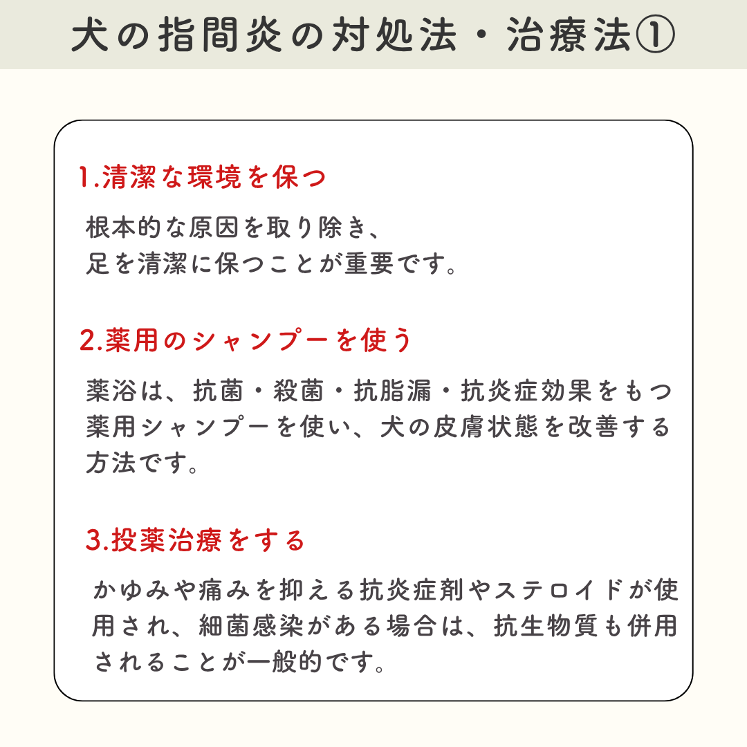 犬の指間炎の治療は、原因を特定し、それに応じたアプローチを行うことが重要です。