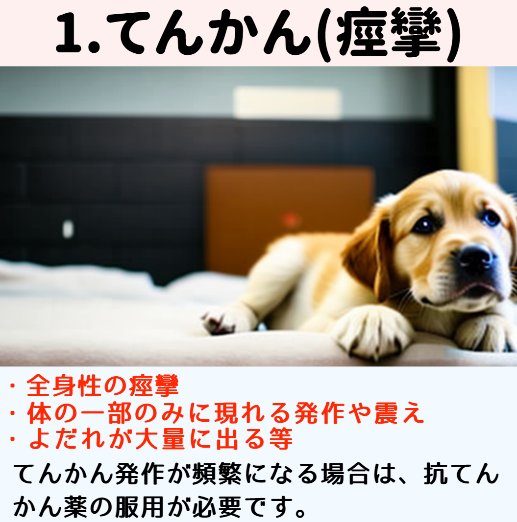 てんかんの判りやすい症状としては、倒れて手足が突っ張るなどの全身性の痙攣があります。また、体の一部のみに現れる発作、手足や顔面などの一部の震えや、口をくちゃくちゃする、よだれが大量に出る、落ち着きがないなどの部分的な症状のみが見られることもあります。