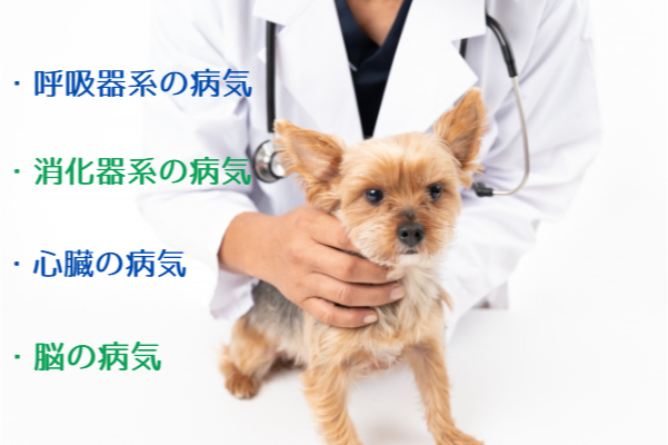 病気としては、胃炎や胃腫瘍、胃拡張、胃捻転症候群などが挙げられます。