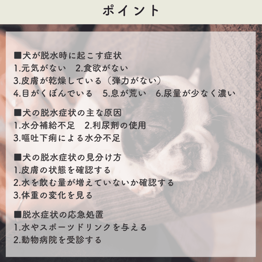 犬の脱水は、水を飲まないことだけでなく、体から水分が急激に失われることでも起こります。