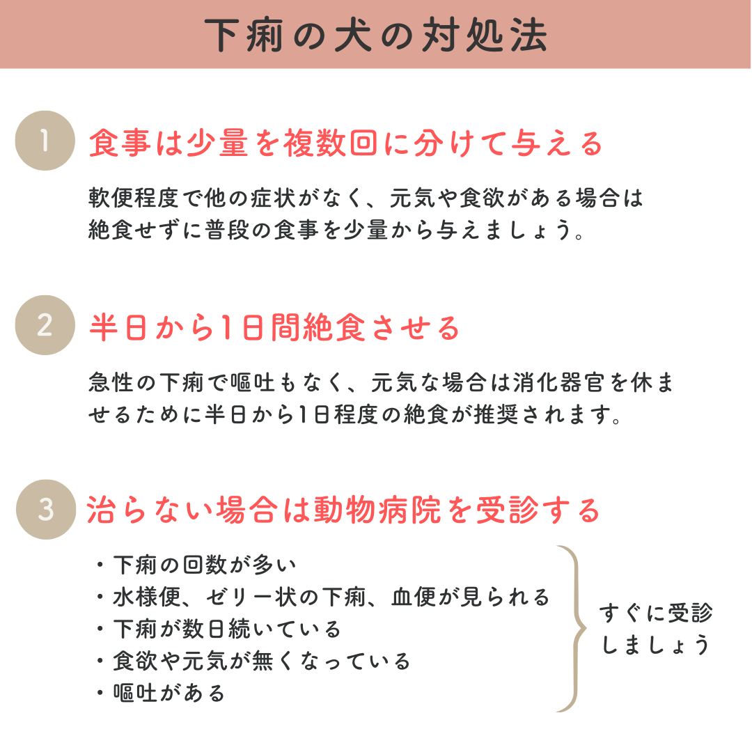 ここでは、犬が下痢をしてしまった際に飼い主がとるべき対処法を3つ紹介します。