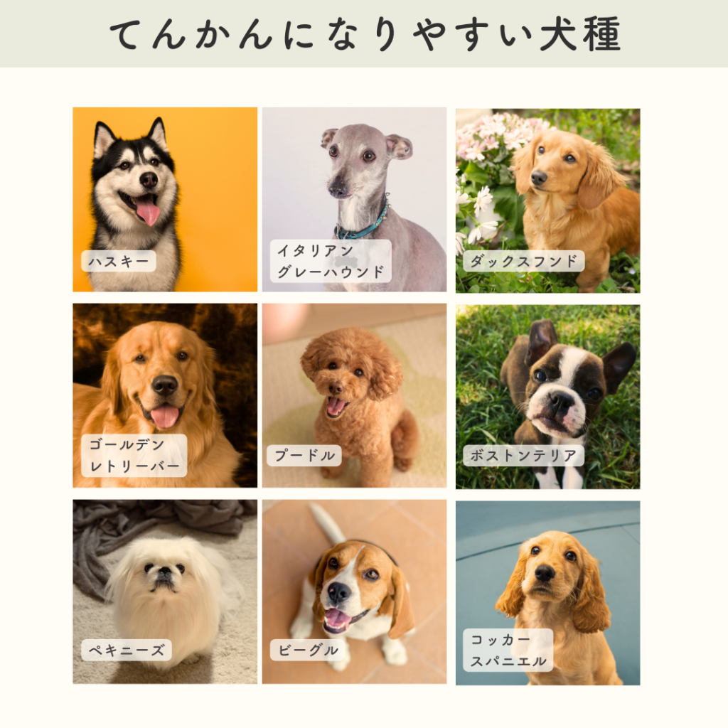 特に、イタリアン・グレーハウンド、シベリアン・ハスキー、ゴールデン・レトリバー、ビーグル、ダックスフンド、プードル、ボストン・テリア、ペキニーズ、アメリカン・コッカー・スパニエルなどは、てんかんの発症リスクが高い犬種です。