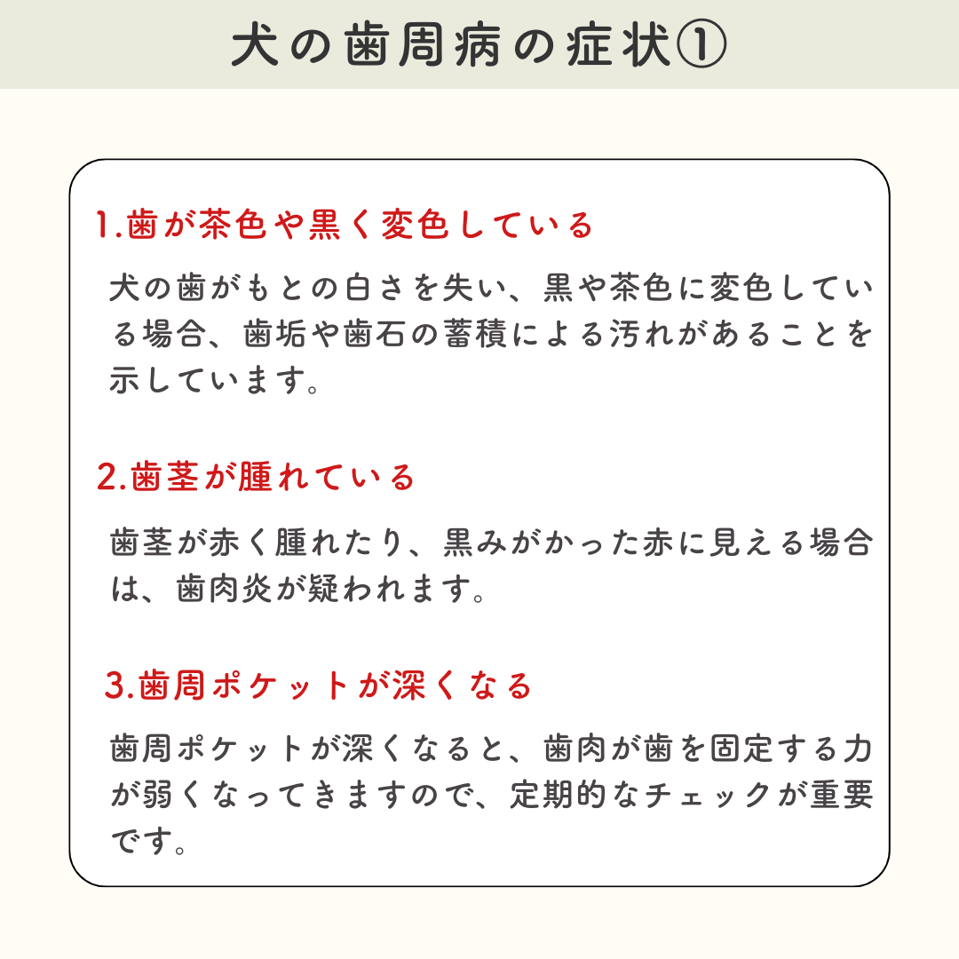 歯周ポケットが深くなると、歯肉が歯を固定する力が弱くなってきますので、定期的なチェックで、愛犬の口内の健康を維持することが重要です。