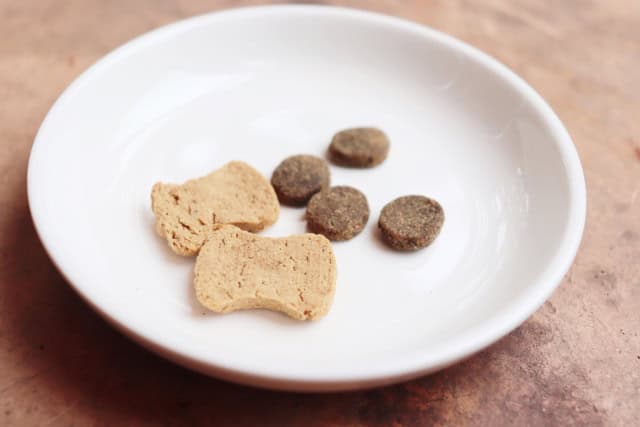 便が乾いていて丸く、量も少ない場合は、フードの量が少なすぎるかもしれません。活動量が多い子や、季節の変わり目で水を飲む量が減っているときなどは、体に必要な水分や栄養が足りていないケースがあります。